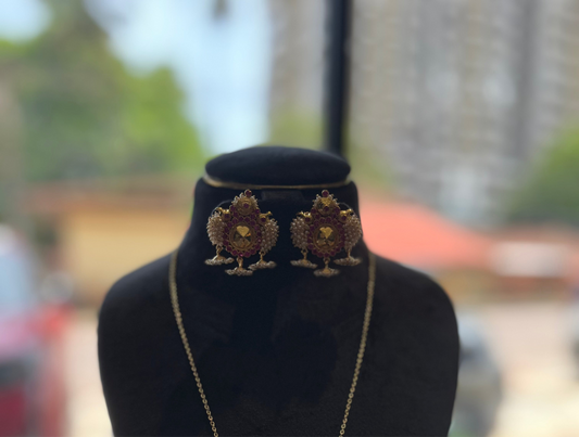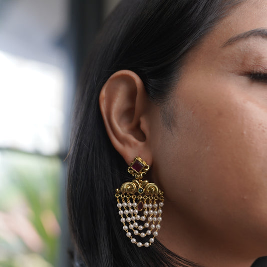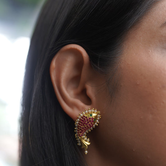 Fish Traditional Triabal Ruby and Pearl Two Way Earring
