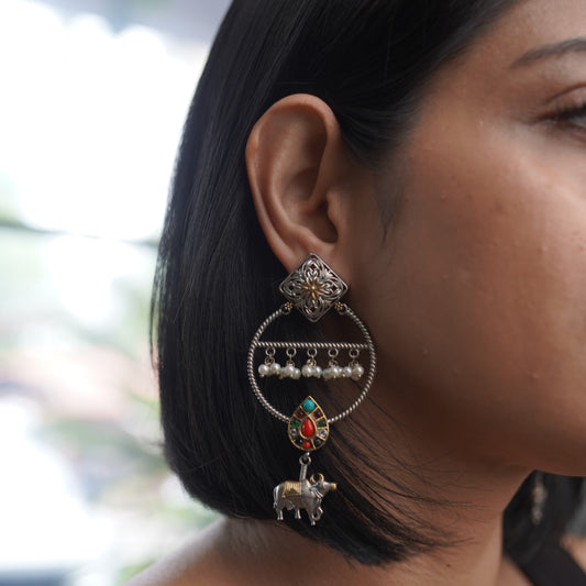 Pearl Ruby Emerald Hoop Royal Peacock Earring