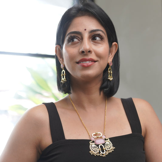 Pink Stone Druzy Work Fashion Fusion Jewelry Necklace Set