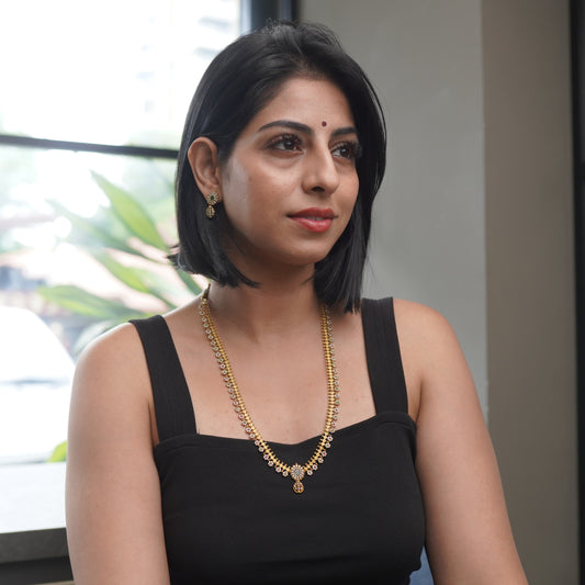 Navrathna Pendant Set With Multi - Color and Pearls Necklace Jewelry Set