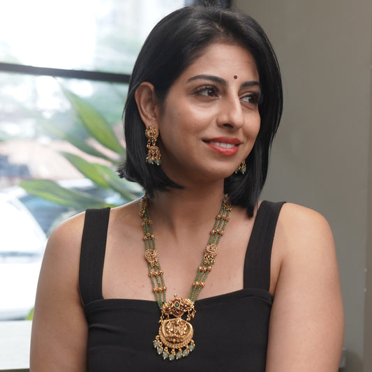 Green Emerald Bead Traditonal Wedding Bead Jewelry Necklace Set