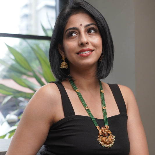 Green Emerald Pearl Traditional Bridal Necklace Jewelry Set
