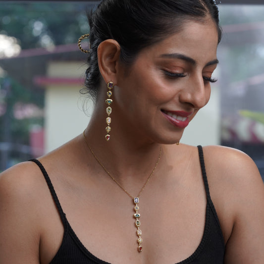Multi Color Droplet Stone Fashion Statement Necklace Set - Anti Tarnish
