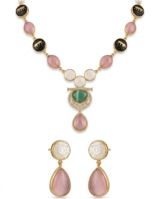 Navratna-Inspired Polki Motif Necklace & Earring Set