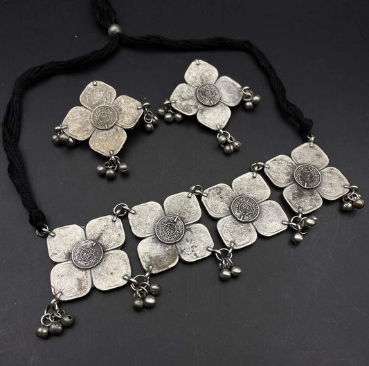 Thrishul Blue & Silver Pearl Necklace Jewelry Set