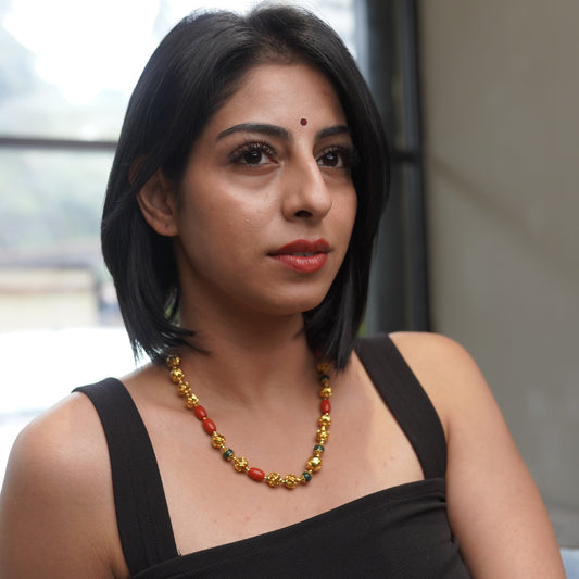 Ruby Green Red Coral Ball Bead Necklace