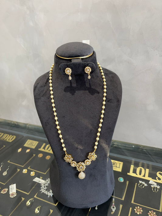 Pearl Polki Pendant Set