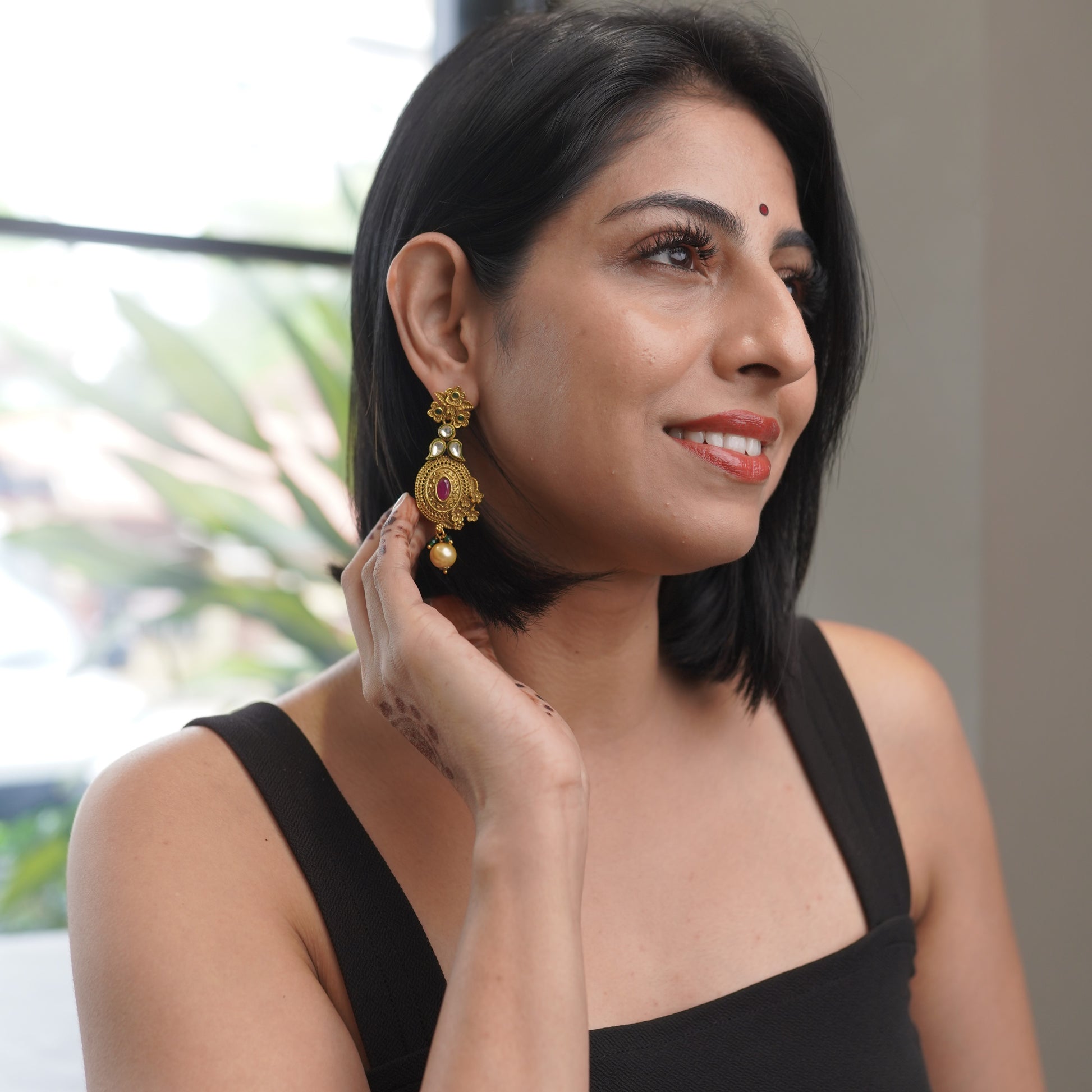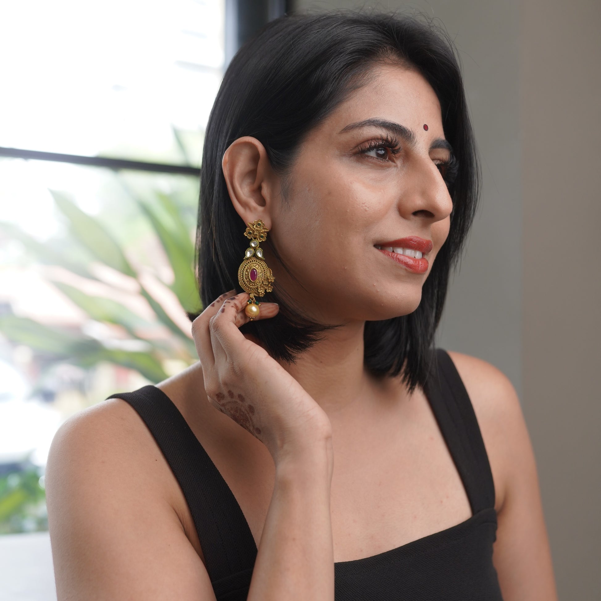 Kundan Gold Ruby Bridal Earring